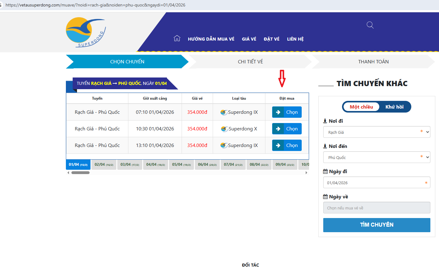 Nhấn nút "Tìm chuyến".