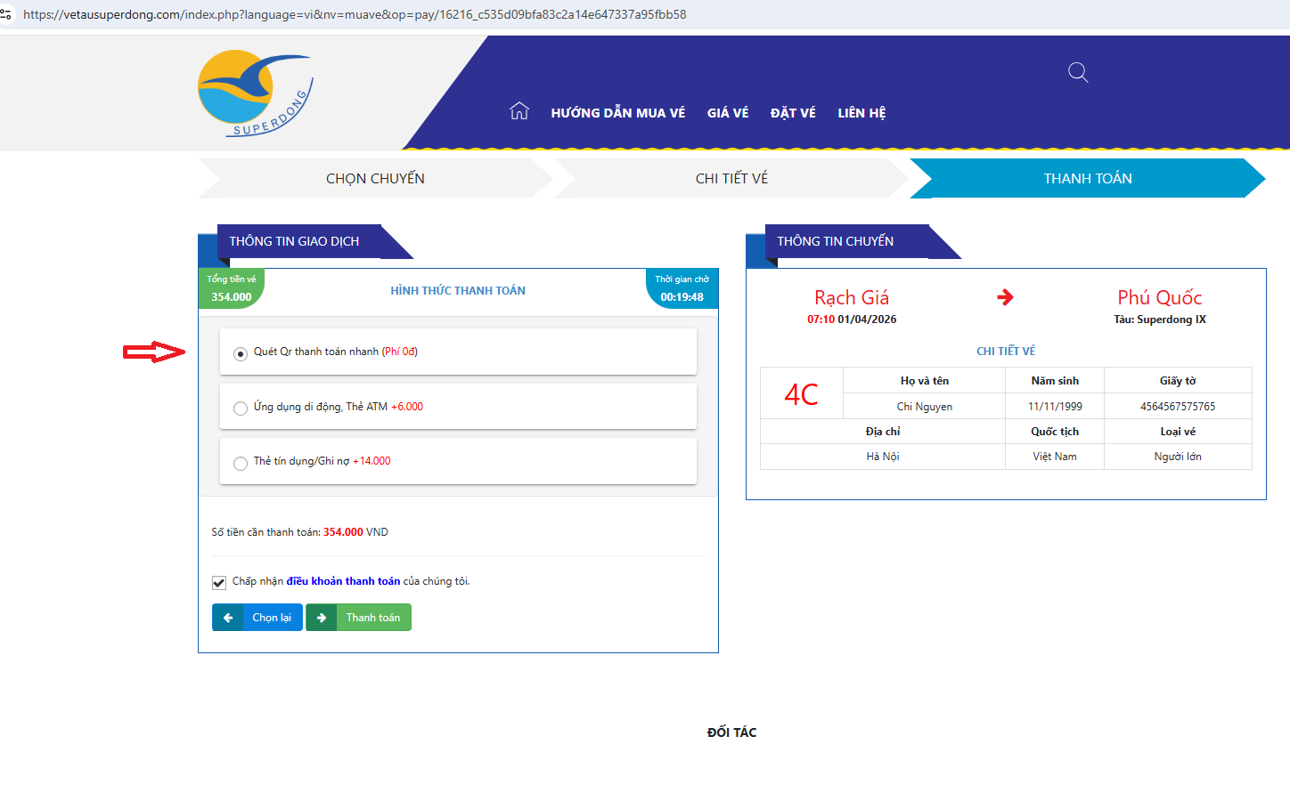 Kiểm tra lại thông tin hành khách thêm một lần nữa để tránh sai sót khi nhận vé.