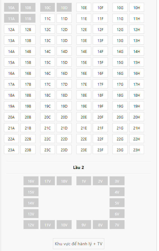 Hạng ghế | Chỉ có hạng ECO | Có cả hạng VIP riêng biệt |