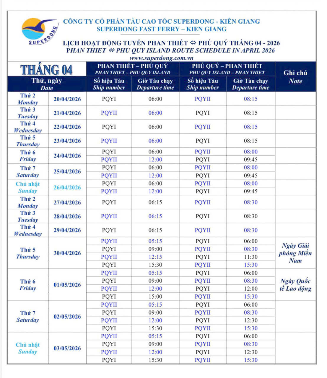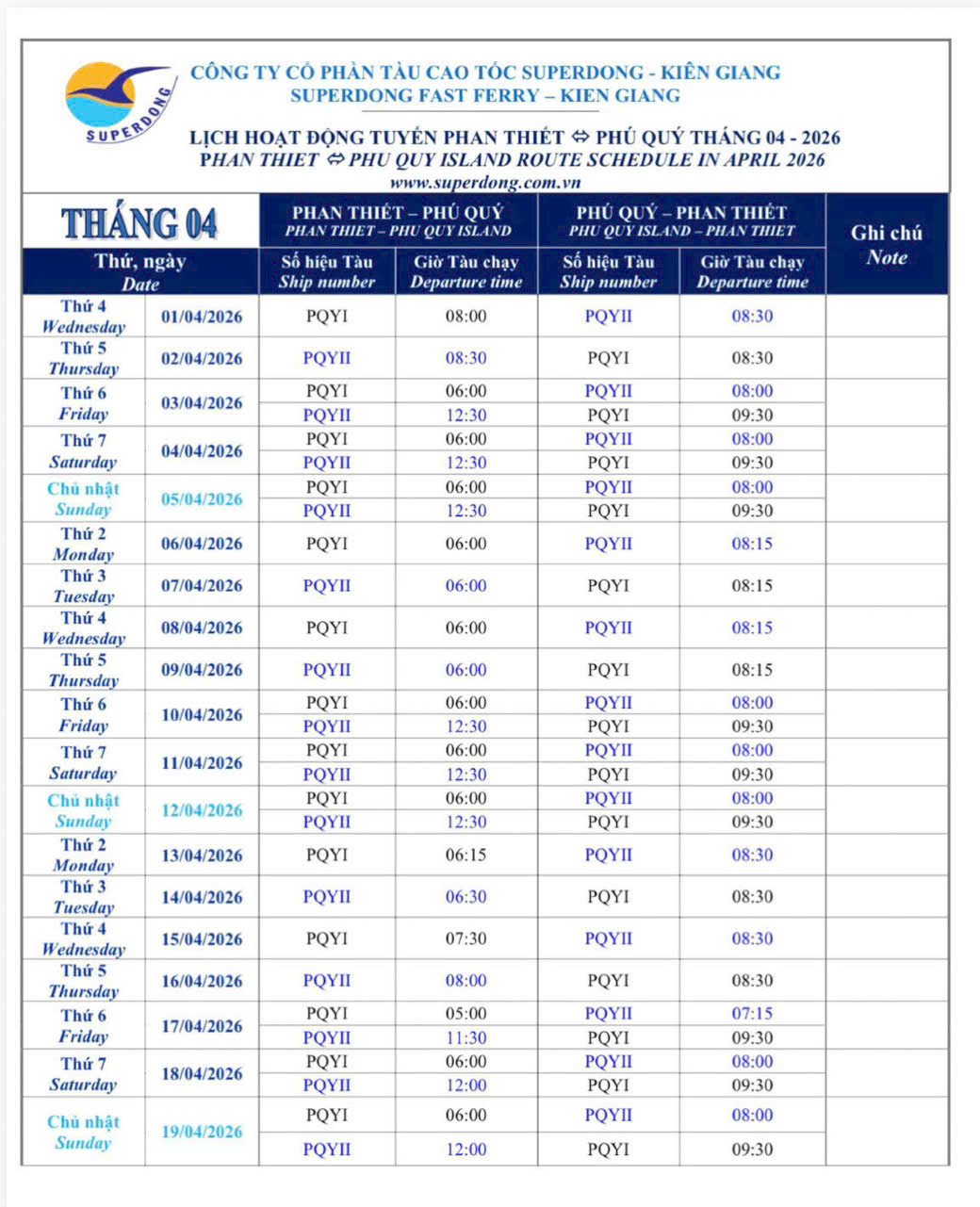 Lịch tàu Superdong Phan Thiết - Phú Quý 4/2026